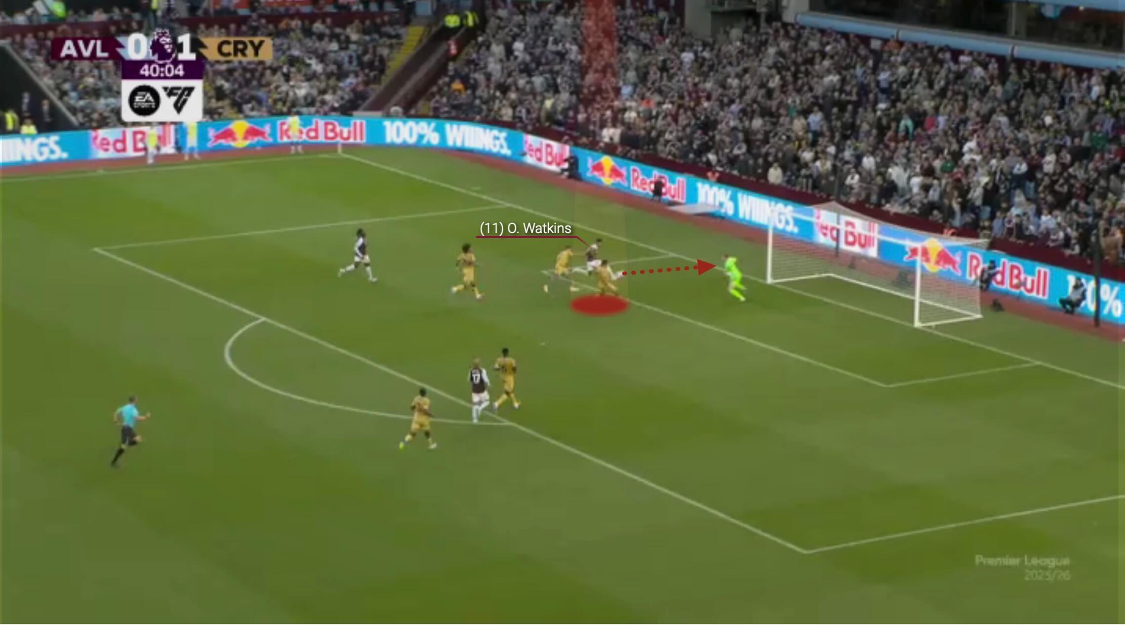 维拉在开场半小时内占据了控球优势,但无法从中撕开水晶宫的防线。他们最好的机会来自麦金的一记过顶传球找到沃特金斯,这或许也是维拉最接近得分的一次。